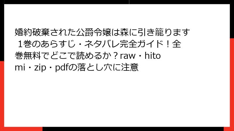 婚約破棄された公爵令嬢は森に引き籠ります 1巻のあらすじ・ネタバレ完全ガイド!全巻無料でどこで読めるか?raw・hitomi・zip・pdfの落とし穴に注意