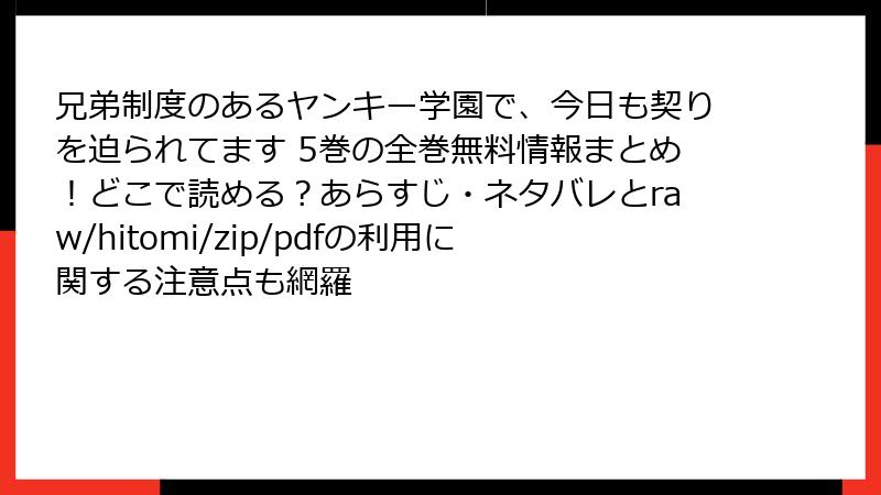 兄弟制度のあるヤンキー学園で、今日も契りを迫られてます 5巻の全巻無料情報まとめ!どこで読める?あらすじ・ネタバレとraw/hitomi/zip/pdfの利用に関する注意点も網羅