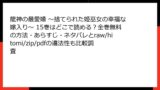 • 更新の不安定さ:サイトが突然閉鎖されたり、コンテンツが削除されたりして、続きが読めなくなることがあります。