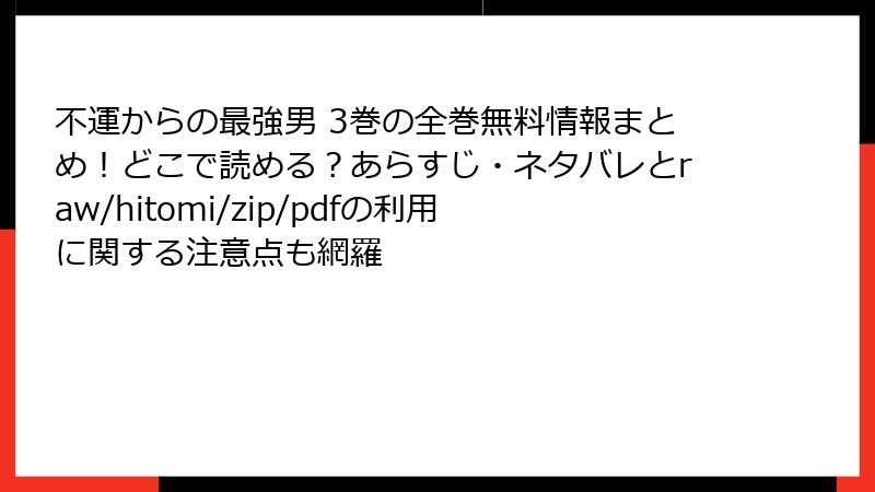 総じて、「不運からの最強男」3巻は異世界ファンタジーの定番要素を上手く取り入れ、ポジティブな評判が多い作品です。家族愛や努力のテーマが心に響く一方、ストーリーの細部にこだわる読者には注意が必要。転生モノが好きな人には特におすすめで、評価の高さがその人気を裏付けています。