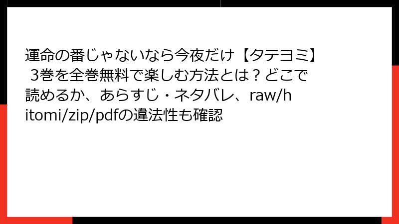 運命の番じゃないなら今夜だけ【タテヨミ】 3巻を全巻無料で楽しむ方法とは?どこで読めるか、あらすじ・ネタバレ、raw/hitomi/zip/pdfの違法性も確認
