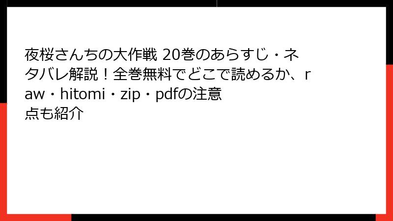 - 夜桜さんちの大作戦 20巻の詳細なあらすじ
