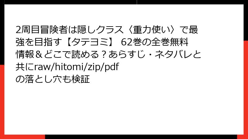 2周目冒険者は隠しクラス〈重力使い〉で最強を目指す【タテヨミ】 62巻の全巻無料情報&どこで読める?あらすじ・ネタバレと共にraw/hitomi/zip/pdfの落とし穴も検証