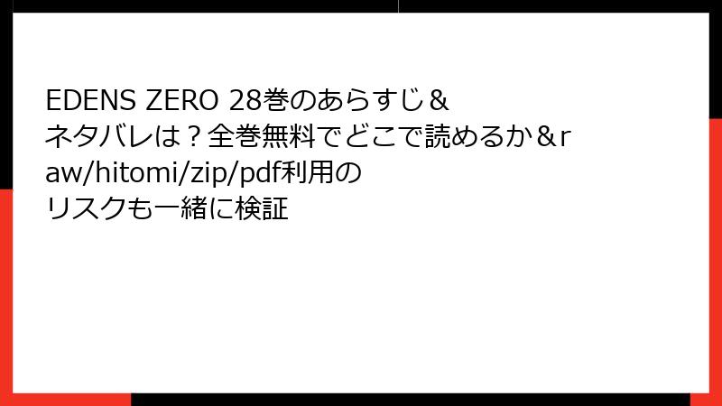 これらのサービスはすべてEDENS ZERO 28巻を扱っており、好みのポイントシステムやキャンペーンで選べます。電子書籍の利便性を活かして、宇宙冒険の続きを楽しんでください。