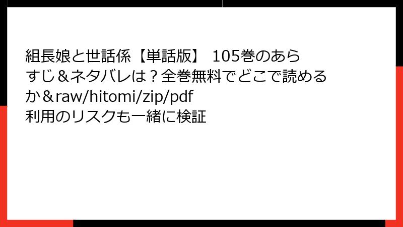 組長娘と世話係【単話版】 105巻のあらすじ&ネタバレは?全巻無料でどこで読めるか&raw/hitomi/zip/pdf利用のリスクも一緒に検証