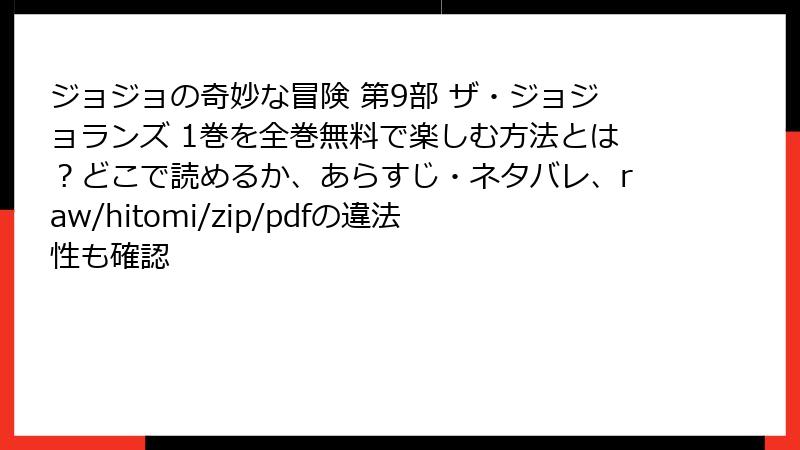 ジョジョの奇妙な冒険 第9部 ザ・ジョジョランズ 1巻を全巻無料で楽しむ方法とは?どこで読めるか、あらすじ・ネタバレ、raw/hitomi/zip/pdfの違法性も確認
