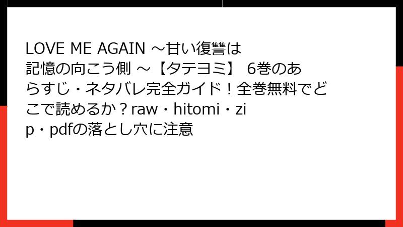 この漫画は、BLジャンルを中心に、復讐、恋愛、ドラマが絡み合う魅力的なストーリーです。主人公が過去のトラウマを抱えつつ、復讐を遂行する過程で出会う人々との関係が深まります。全体として、心理描写が細かく、読者を引き込む展開が特徴です。以下では、各巻の主要なネタバレを詳しく解説しますが、未読の方はご注意ください。