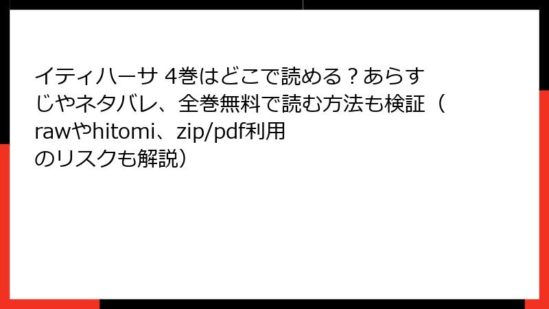 イティハーサ 4巻はどこで読める?あらすじやネタバレ、全巻無料で読む方法も検証(rawやhitomi、zip/pdf利用のリスクも解説)