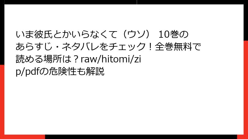 いま彼氏とかいらなくて(ウソ) 10巻のような人気漫画を、raw、hitomi、zip、pdf、漫画バンクなどの海賊版サイトで読むことは、一見便利に見えますが、深刻なリスクを伴います。この記事では、そのリスクを法的、セキュリティ、経済的、倫理的、品質面から詳しく解説します。海賊版サイトの利用は、クリエイターや業界に悪影響を及ぼすだけでなく、利用者自身にも大きな危険が潜んでいます。