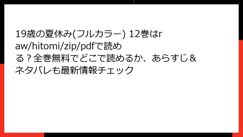 | 19歳の夏休み(フルカラー) 12巻 | ○ | ○ | ○ | ○ | ○ | ○ | ○ | ○ |