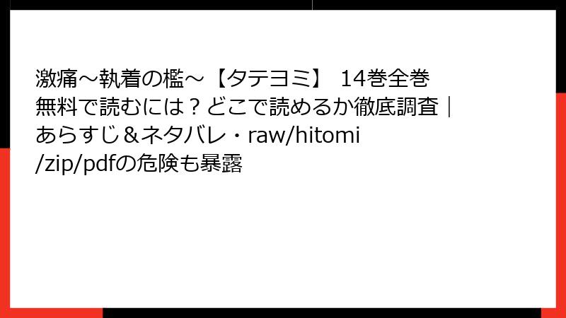 12. 激痛~執着の檻~【タテヨミ】 14巻を海賊版サイトで読むリスク詳解