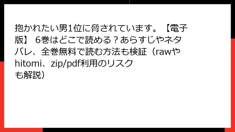 - 抱かれたい男1位に脅されています。【電子版】 6巻を海賊版サイトで読むリスク詳解