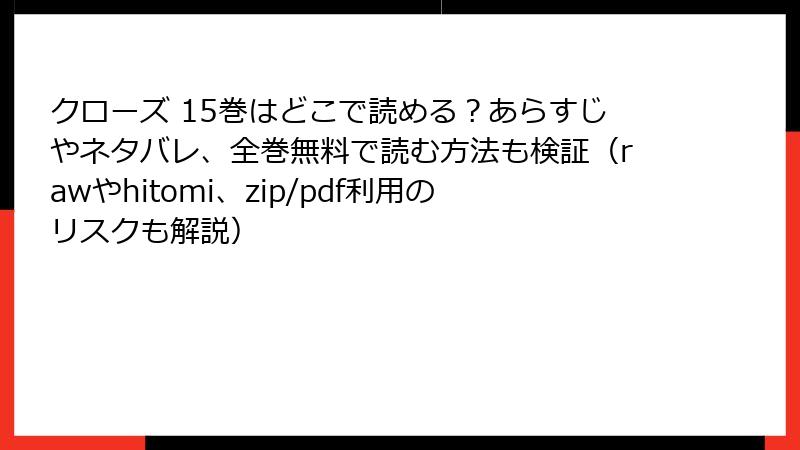 - 業界衰退:海賊版の蔓延で正規販売が減少し、新人作家のデビューが難しくなる。