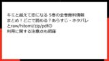 ほとんどの指定サービスで配信されており、選択肢が豊富。ポイント制が好みならまんが王国やRenta!、統合ポイントならブックライブやebookjapanを。試し読みを活用して、自分に合ったサービスを選びましょう。