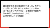 これらの海賊版サイトは、信頼できないサーバーで運営されており、アクセスするだけでマルウェアに感染する危険があります。zipやpdfファイルをダウンロードすると、ウイルスが仕込まれていることが多く、パソコンやスマホが乗っ取られるケースが報告されています