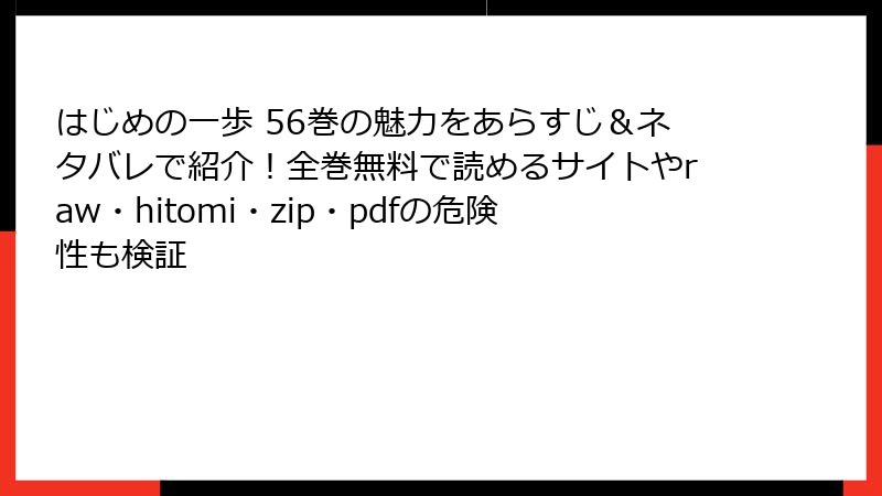 人気ボクシング漫画「はじめの一歩」の56巻は、多くの電子書籍プラットフォームで配信されています。この巻は、沢村戦後の休息期を描いた感動的なエピソードが満載で、ファンなら必読です。ここでは、指定されたサービス(コミックシーモア、ブックライブ、まんが王国、ebookjapan、Renta!、めちゃコミック、ピッコマ、LINEマンガ)について、利用可能性や詳細を詳しく解説します。各サービスの特徴や価格、試し読みオプションを基に、読む際の参考にしてください。情報は最新の配信状況に基づいていますが、変更の可能性があるのでご注意を。