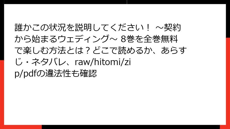 誰かこの状況を説明してください! ~契約から始まるウェディング~ 8巻を全巻無料で楽しむ方法とは?どこで読めるか、あらすじ・ネタバレ、raw/hitomi/zip/pdfの違法性も確認