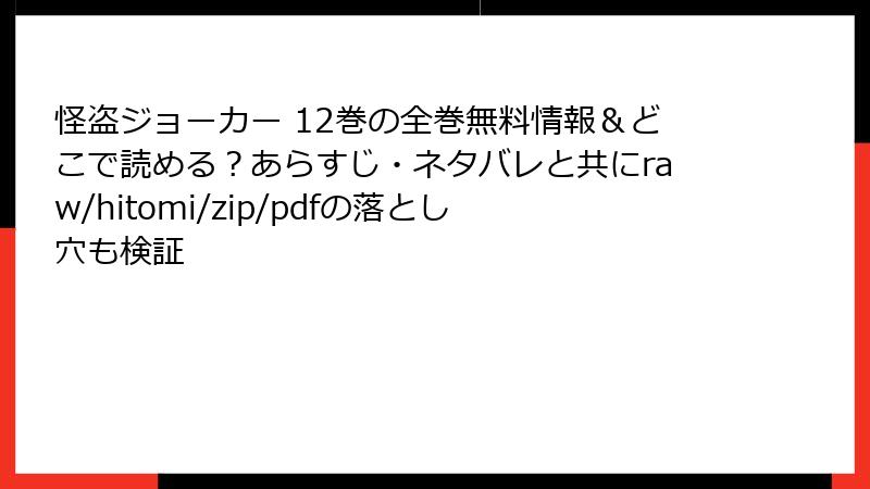 怪盗ジョーカー 12巻を海賊版サイトで読むリスク