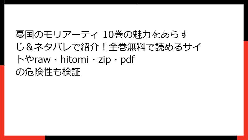 『憂国のモリアーティ』のような人気漫画を、raw/hitomi/zip/pdf/漫画バンクなどの海賊版サイトで読むことは、一見便利に思えますが、深刻なリスクを伴います。この記事では、海賊版サイト利用の危険性を詳しく解説します。日本国内の法規制や実際の事例を基に、法的・セキュリティ面などの側面から掘り下げます。海賊版はクリエイターの権利を侵害するだけでなく、利用者自身にも大きな被害をもたらす可能性があります。読み進めて、賢い選択を考えてみてください。