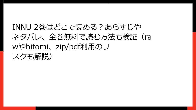 海賊版サイトの漫画は、翻訳の質が低かったり、ページが欠けていたりするケースが多く、『INNU』のストーリーを正しく楽しめない可能性があります。また、サイト自体が突然閉鎖されたり、広告だらけで読みにくかったりします。zipやpdf形式はウイルス以外にも、ファイルの破損リスクがあり、せっかくダウンロードしても使えないことがあります。公式ルートなら、高品質で安定したアクセスが保証されます。