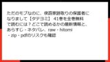 海賊版サイトのコンテンツは、画質が悪く、翻訳ミスや欠ページが多いです。また、サイト自体が突然閉鎖されたり、広告だらけで読みにくかったりします。zipやpdfのダウンロードは、ファイルが破損している場合があり、時間を無駄にします。
