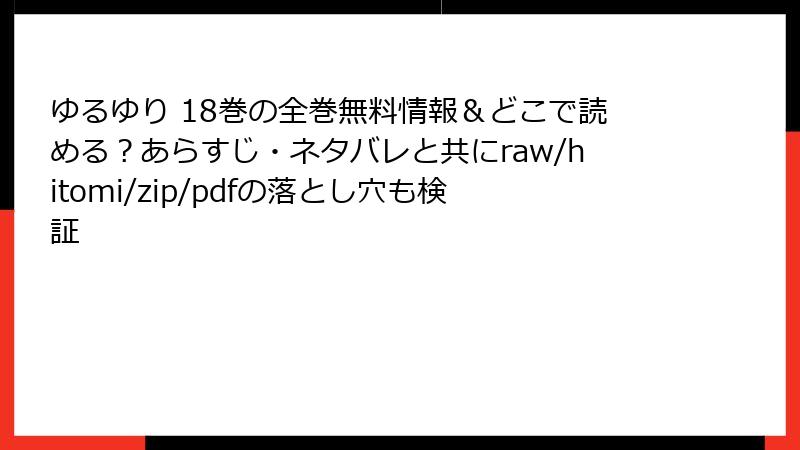 人気漫画「ゆるゆり」の18巻を、raw、hitomi、zip、pdf、漫画バンクなどの海賊版サイトで読むのは一見手軽に見えますが、深刻なリスクを伴います。これらのサイトは著作権を侵害した違法コンテンツを提供しており、利用者は知らず知らずのうちに犯罪に加担する可能性があります。この記事では、法的、セキュリティ、倫理的、品質面などのリスクを詳しく解説します。海賊版の利用は避け、正規ルートでの購入を強くおすすめします。