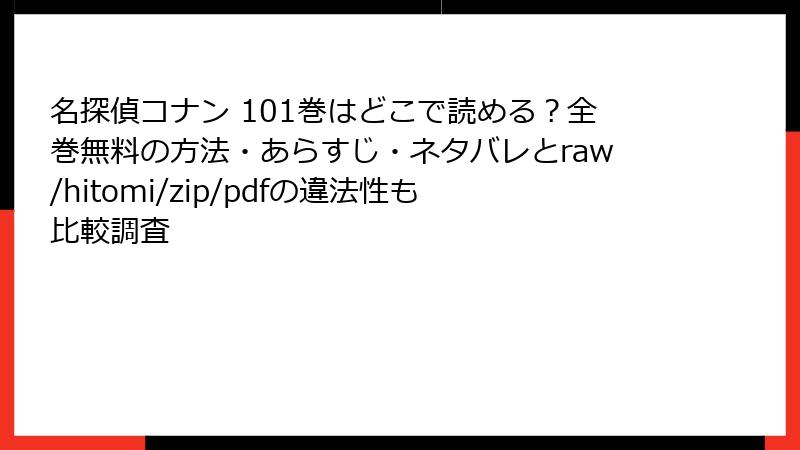 名探偵コナン101巻のような人気漫画を、raw/hitomi/zip/pdf/漫画バンクなどの海賊版サイトで読む行為は、一見手軽に思えるかもしれません。しかし、これには深刻なリスクが伴います。この記事では、法的、セキュリティ、プライバシー、品質、倫理的・経済的な観点から詳しく解説します。海賊版利用は避け、正規ルートでの購入やレンタルをおすすめしますが、ここではリスクに焦点を当てて読み応えのある形でまとめます。