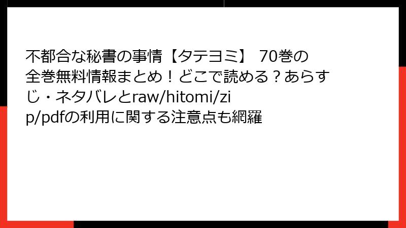 不都合な秘書の事情【タテヨミ】 70巻の全巻無料情報まとめ!どこで読める?あらすじ・ネタバレとraw/hitomi/zip/pdfの利用に関する注意点も網羅