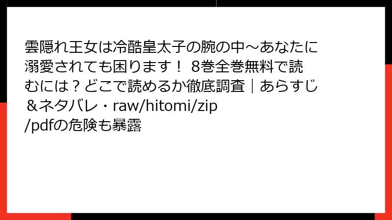 雲隠れ王女は冷酷皇太子の腕の中~あなたに溺愛されても困ります! をraw/hitomi/zip/pdf/漫画バンクなどの海賊版サイトで読むリスク詳解