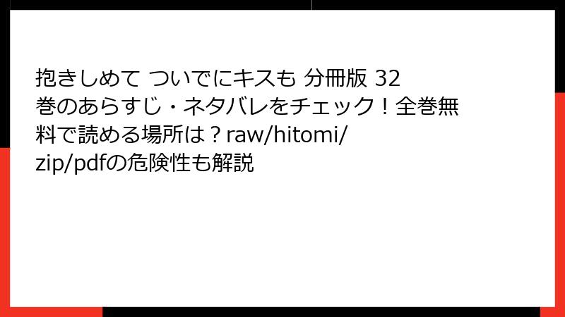 人気漫画「抱きしめて ついでにキスも」を、raw、hitomi、zip、pdf、漫画バンクなどの海賊版サイトで読むことは、手軽に思えるかもしれませんが、深刻なリスクを伴います。この記事では、そんな海賊版サイト利用の危険性を詳しく解説します。法的問題からセキュリティ面まで、さまざまな角度からリスクを掘り下げ、なぜ正規ルートを選ぶべきかを考えていきます。海賊版は一時的な満足を与えるかもしれませんが、長期的には自分自身や業界に悪影響を及ぼす可能性が高いです。