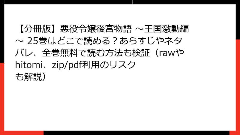【分冊版】悪役令嬢後宮物語 ~王国激動編~ 25巻はどこで読める?あらすじやネタバレ、全巻無料で読む方法も検証(rawやhitomi、zip/pdf利用のリスクも解説)