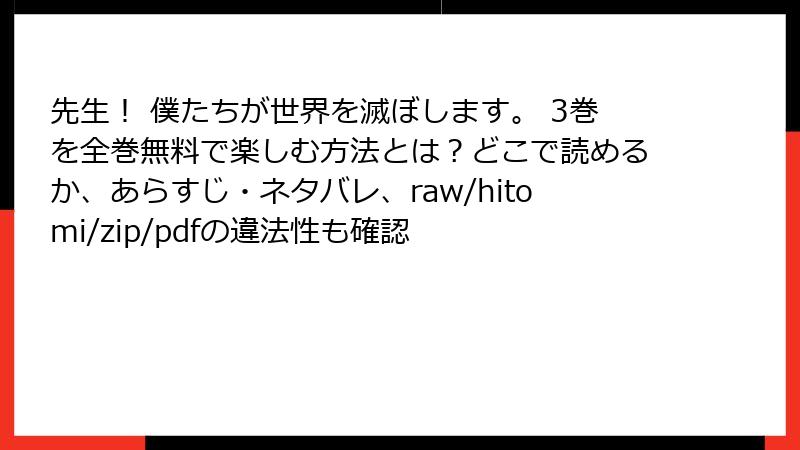 先生! 僕たちが世界を滅ぼします。 3巻を全巻無料で楽しむ方法とは?どこで読めるか、あらすじ・ネタバレ、raw/hitomi/zip/pdfの違法性も確認
