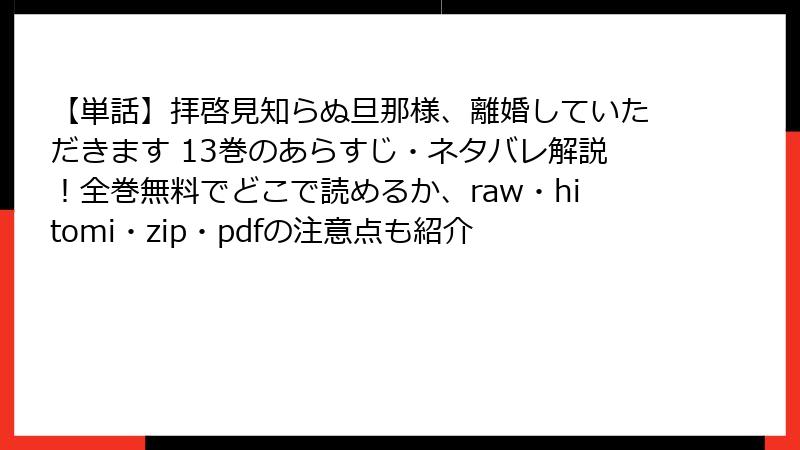 【単話】拝啓見知らぬ旦那様、離婚していただきます 13巻のあらすじ・ネタバレ解説!全巻無料でどこで読めるか、raw・hitomi・zip・pdfの注意点も紹介