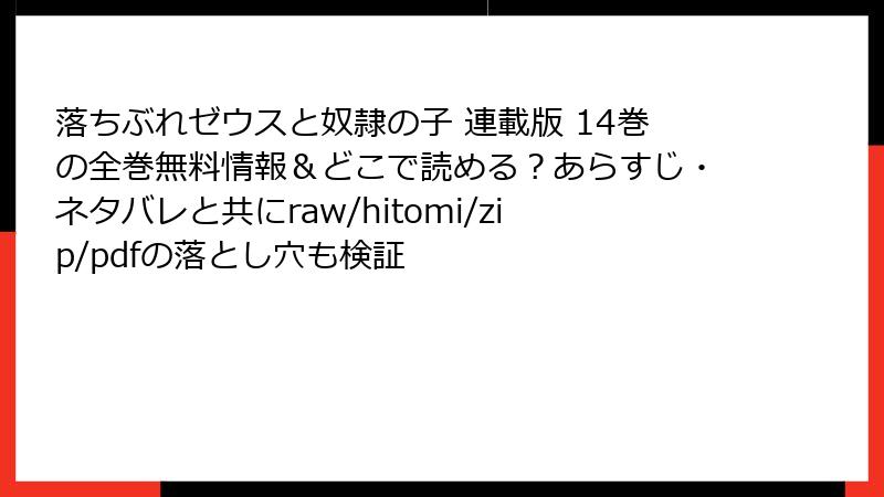 落ちぶれゼウスと奴隷の子 連載版 14巻の全巻無料情報&どこで読める?あらすじ・ネタバレと共にraw/hitomi/zip/pdfの落とし穴も検証