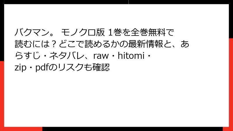 人気漫画『バクマン。』を無料で読みたいという誘惑から、raw、hitomi、zip、pdf、漫画バンクなどの海賊版サイトを利用する人がいます。これらのサイトは一見便利ですが、深刻なリスクを伴います。法的問題からセキュリティ脅威まで、さまざまな危険が潜んでおり、利用者は知らず知らずのうちに被害者になる可能性があります。この記事では、それらのリスクを詳しく解説します。