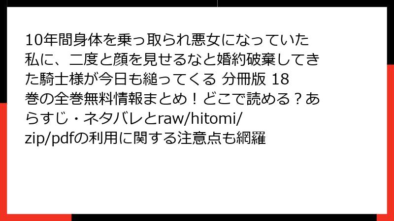 10年間身体を乗っ取られ悪女になっていた私に、二度と顔を見せるなと婚約破棄してきた騎士様が今日も縋ってくる 分冊版 18巻のネタバレ詳解