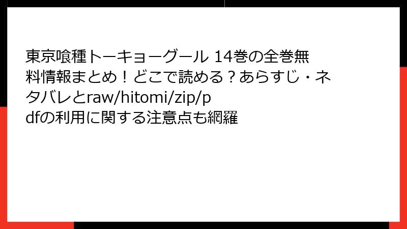 人気漫画『東京喰種トーキョーグール 14巻』を、raw、hitomi、zip、pdf、漫画バンクなどの海賊版サイトで読むのは、一見手軽に見えますが、深刻なリスクを伴います。これらのサイトは違法にアップロードされたコンテンツを提供しており、利用者は知らず知らずのうちにトラブルに巻き込まれる可能性があります。ここでは、法的、セキュリティ、プライバシー、倫理的な観点から詳しく解説します。利用を検討している方は、ぜひこれらのリスクを理解してください。