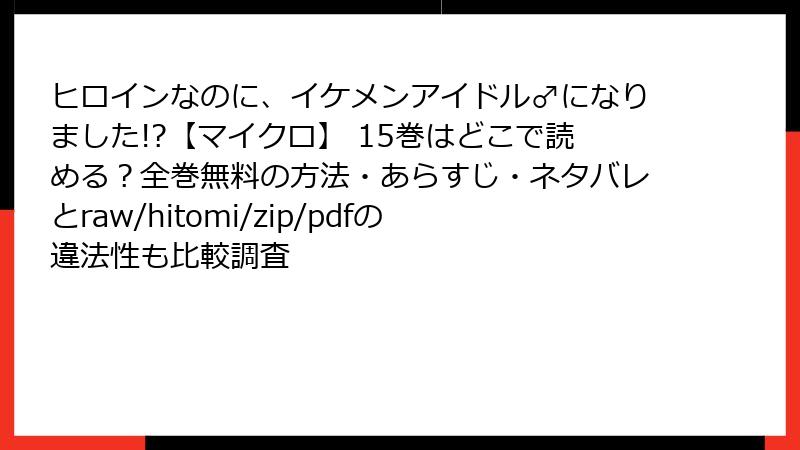 人気漫画「ヒロインなのに、イケメンアイドル♂になりました!?」を、raw、hitomi、zip、pdf、漫画バンクなどの海賊版サイトで読むのは、手軽に思えるかもしれませんが、さまざまな深刻なリスクが伴います。この記事では、そうしたサイトを利用する危険性を多角的に解説します。法的問題からセキュリティの脅威まで、知っておくべきポイントを詳しく掘り下げます。最終的に、合法的な手段をおすすめします。