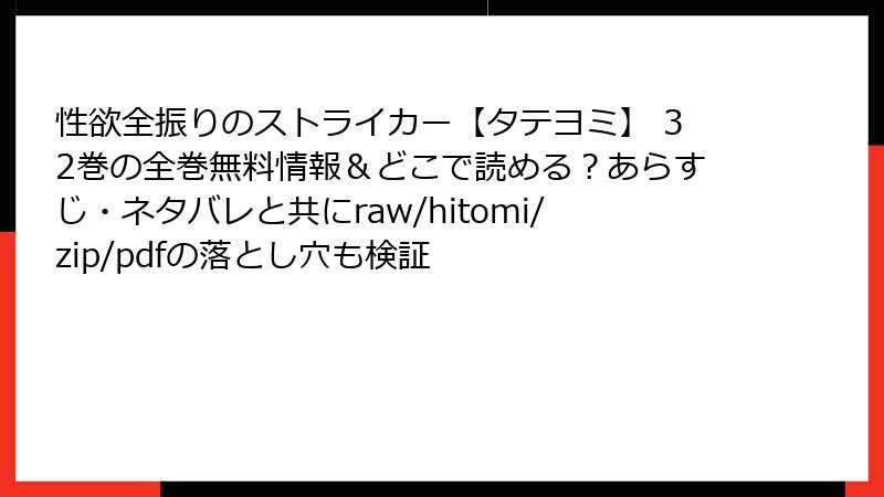 「性欲全振りのストライカー【タテヨミ】」は、タテヨミ形式の成人向けサッカー漫画で、32巻はシリーズの人気エピソードの一つです。電子書籍として配信されているサービスを調査したところ、主に特定のプラットフォームで利用可能であることがわかりました。指定されたサービス(コミックシーモア、ブックライブ、まんが王国、ebookjapan、Renta!、めちゃコミック、ピッコマ、LINEマンガ)の中から、利用可能なものを中心に詳述します。配信状況は変動する可能性があるため、最新情報を確認することをおすすめします。