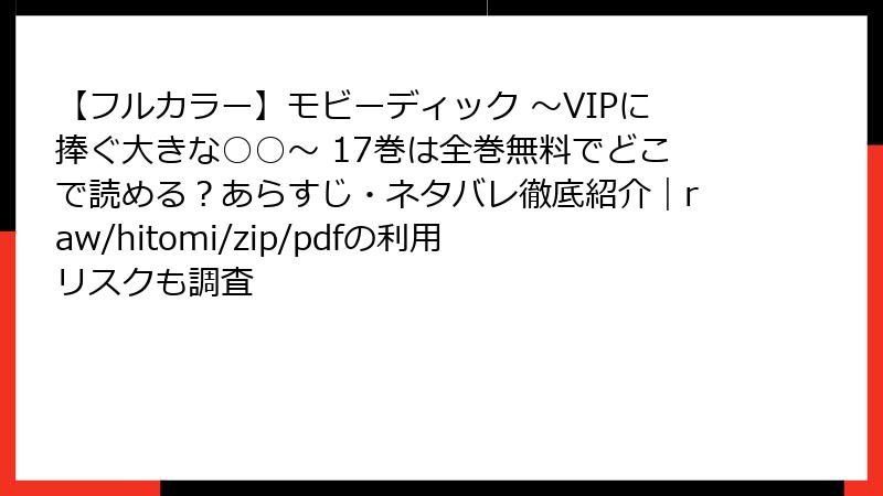 この記事では、人気のアダルト漫画シリーズ「【フルカラー】モビーディック ~VIPに捧ぐ大きな○○~」の17巻に焦点を当てて、詳細なあらすじを解説します。主人公の成り上がりストーリーが魅力的な本作は、フルカラーの美しい作画で描かれるエロティックなシーンが満載です。全体の文脈を踏まえつつ、17巻のキーとなる展開を深掘りしていきます。ネタバレを含むので、未読の方はご注意ください。