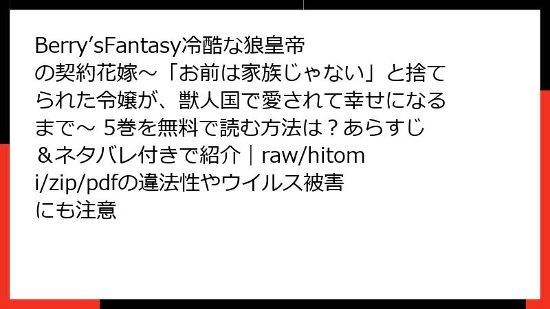 - Berry’s Fantasy 冷酷な狼皇帝の契約花嫁~「お前は家族じゃない」と捨てられた令嬢が、獣人国で愛されて幸せになるまで~ を海賊版サイトで読むリスク