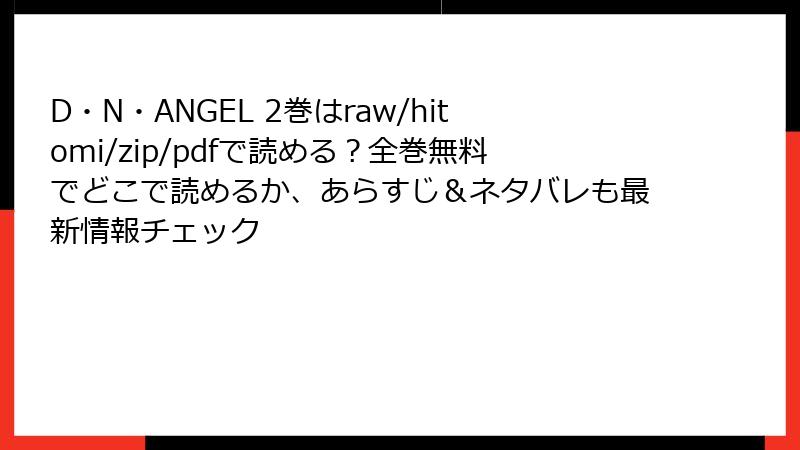 LINEマンガでは、『D・N・ANGEL』の電子書籍版が全巻利用可能。3話無料などのキャンペーンが多く、LINEポイントで購入できます。アプリ内で読みやすく、ソーシャルシェアも簡単です。