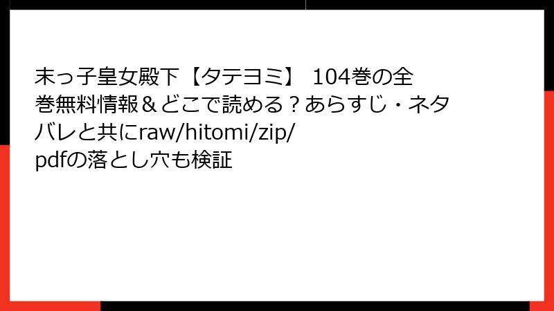 人気の縦読みコミック「末っ子皇女殿下【タテヨミ】」を、raw、hitomi、zip、pdf、漫画バンクなどの海賊版サイトで無料で読もうとする人は少なくありません。しかし、これらのサイトを利用することは、法的・セキュリティ的な深刻なリスクを伴います。この記事では、そんな海賊版サイトの利用がもたらすさまざまな危険性を詳しく解説します。無料の誘惑に負けず、正規の方法で楽しむことをおすすめします。以下で、具体的なリスクをシーンごとに分解して考察します。