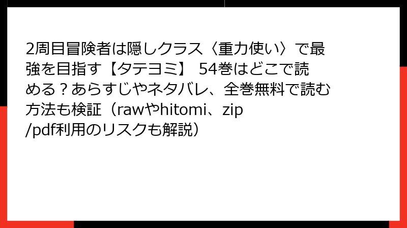 人気の漫画「2周目冒険者は隠しクラス〈重力使い〉で最強を目指す【タテヨミ】 54巻」を、raw、hitomi、zip、pdf、漫画バンクなどの海賊版サイトで無料で読むのは魅力的ですが、深刻なリスクが伴います。この記事では、法的・セキュリティ・倫理的な側面から詳しく解説します。海賊版利用は避け、正規ルートをおすすめします。