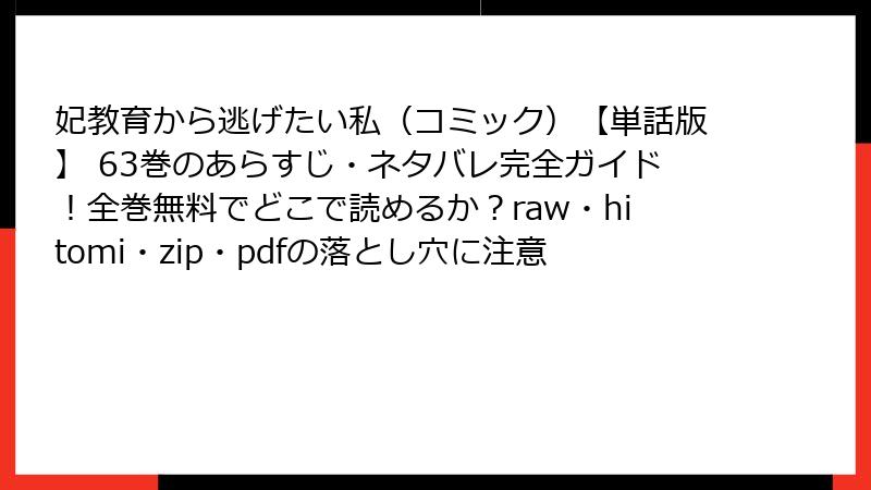 妃教育から逃げたい私(コミック)【単話版】 63巻のあらすじ・ネタバレ完全ガイド!全巻無料でどこで読めるか?raw・hitomi・zip・pdfの落とし穴に注意