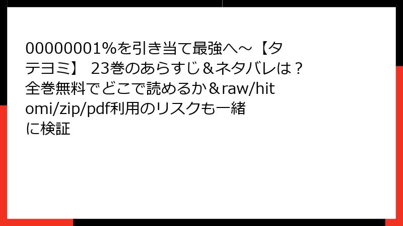 00000001%を引き当て最強へ~【タテヨミ】 23巻のあらすじ&ネタバレは?全巻無料でどこで読めるか&raw/hitomi/zip/pdf利用のリスクも一緒に検証