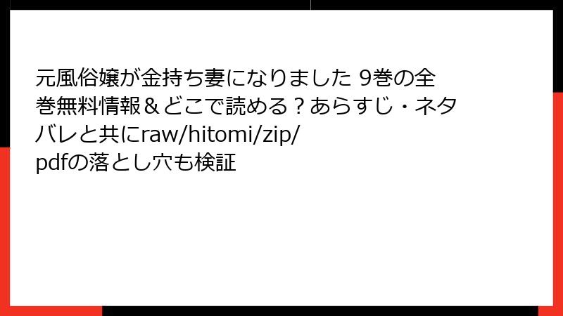 元風俗嬢が金持ち妻になりました 9巻 海賊版サイトで読むリスク詳解