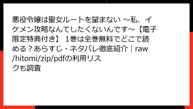 悪役令嬢は聖女ルートを望まない ~私、イケメン攻略なんてしたくないんです~ を raw/hitomi/zip/pdf/漫画バンクなどの海賊版サイトで読むリスク
