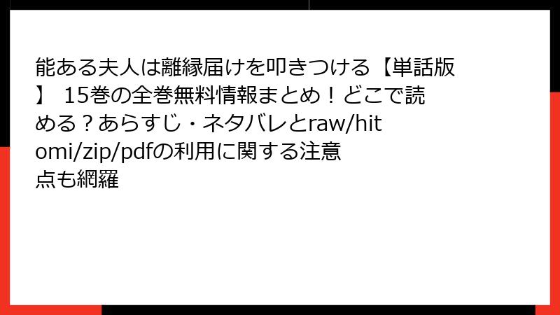 能ある夫人は離縁届けを叩きつける【単話版】 15巻の全巻無料情報まとめ!どこで読める?あらすじ・ネタバレとraw/hitomi/zip/pdfの利用に関する注意点も網羅