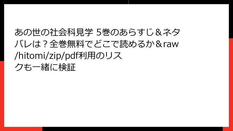 人気コミック「あの世の社会科見学 5巻」を無料で読みたいという誘惑から、raw、hitomi、zip、pdf、漫画バンクなどの海賊版サイトを利用する人がいます。しかし、これらのサイトは著作権を無視した違法アップロードが多く、利用には深刻なリスクが伴います。この記事では、法的な罰則からセキュリティの脅威、倫理的な問題までを詳しく解説。無料の裏側に潜む危険性を知り、正規ルートを選ぶ重要性を理解しましょう。海賊版は一時的な楽しみを提供するかもしれませんが、長期的な損失を招く可能性が高いです。